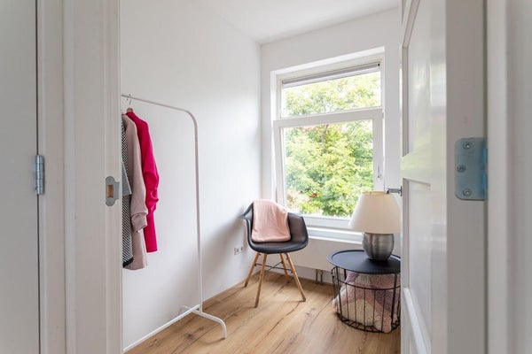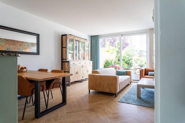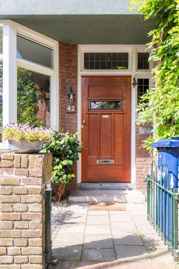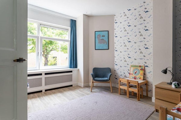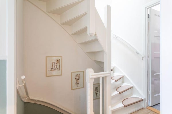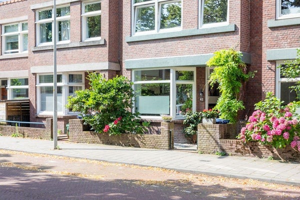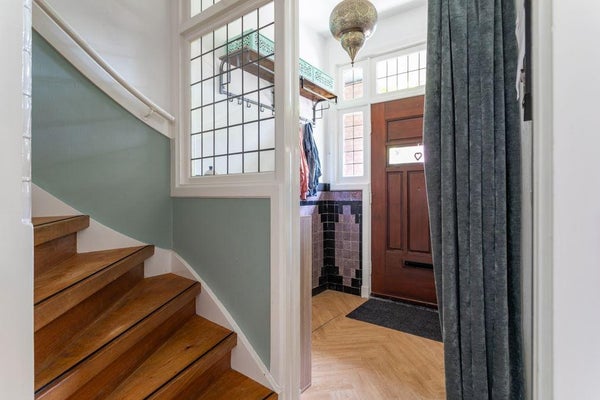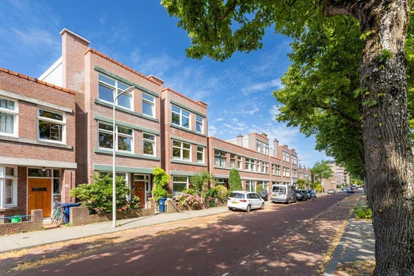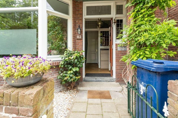 De woning heeft, als een van de weinige in de straat, drie woonlagen en is gesitueerd aan een rustige weg met veel groen.
