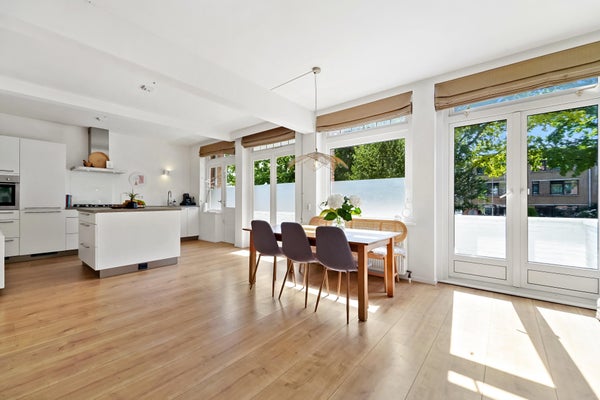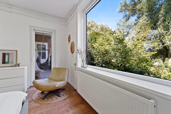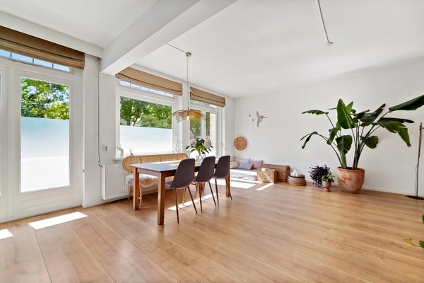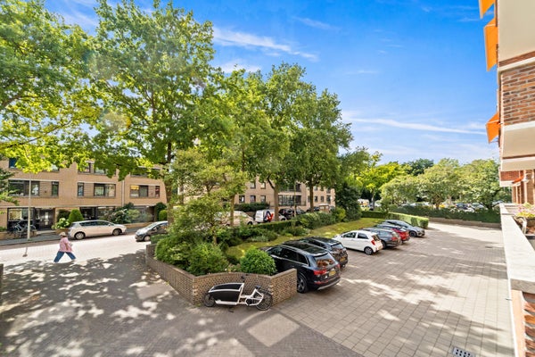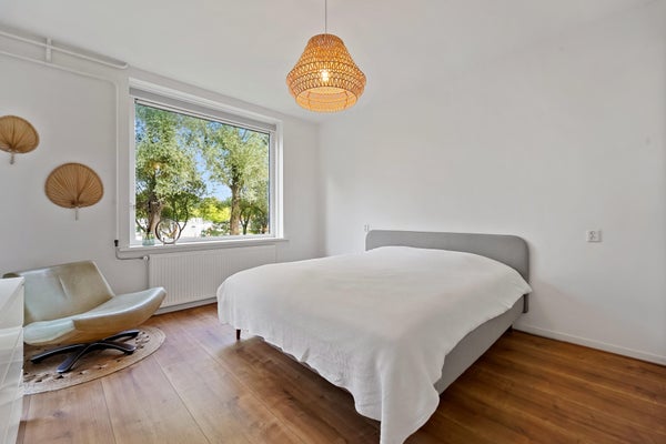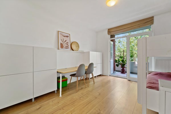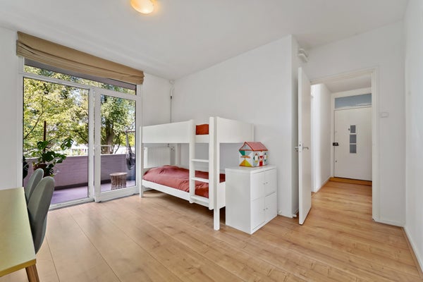Wonderfully spacious (102m²!) and bright apartment located on the first floor with green views in the popular Bloemenbuurt neighborhood. The apartment features two spacious bedrooms, two balconies with morning and afternoon/evening sun, an elevator, a 12m² (bicycle) storage room at street level providing ample storage, and a private parking space in the communal parking lot.