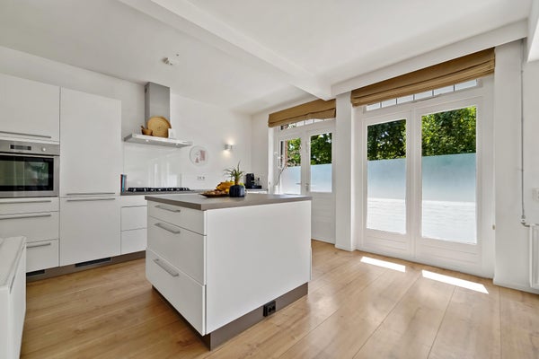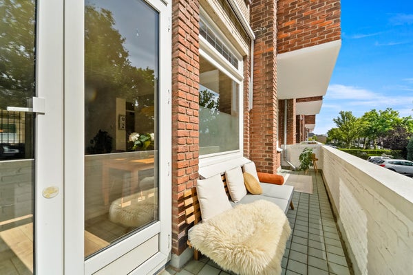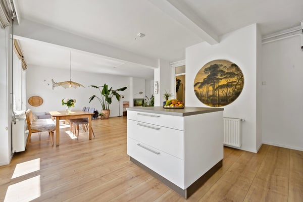 The Bloemenbuurt is a lively and pleasant neighborhood near the beach and dunes. The location is perfect if you enjoy a green and peaceful environment yet still want to live close to all amenities. Several shopping streets are nearby, such as Goudsbloemlaan, Thomsonlaan, and Fahrenheitstraat. There’s plenty of choice with cozy restaurants, trendy bars, charming boutiques, and charming delicatessens! Various sports facilities, schools, and public transport (tram 3 and bus 24, city center) are within walking distance, very convenient! Layout: Enclosed porch with mailboxes, staircase, and elevator to the first floor. Apartment entrance with hallway, toilet with hand basin, and built-in closet. The hallway leads to the impressively spacious living/dining room with plenty of natural light. The luxurious open-plan kitchen is equipped with various built-in appliances, including a dishwasher, oven, 5-burner gas cooktop, extractor hood, and fridge/freezer. Both the kitchen and dining room provide access to the front balcony, spanning the entire width of the apartment and enjoying the afternoon and evening sun. The master bedroom is located at the rear, offering a green view and access to the balcony. The second spacious bedroom is at the rear, with sliding doors leading to the balcony with morning sun and a built-in closet. The bathroom, equipped with a shower, vanity, towel radiator, and connections for a washing machine and dryer, is accessible from the hallway. The entire apartment features beautiful laminate flooring.