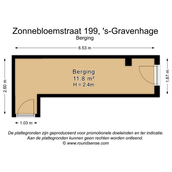 Grote berging op straatniveau van maar liefst 12 m2 met achteruitgang
