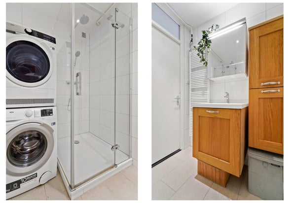 Douche, wastafelmeubel, wasmachineaansluiting